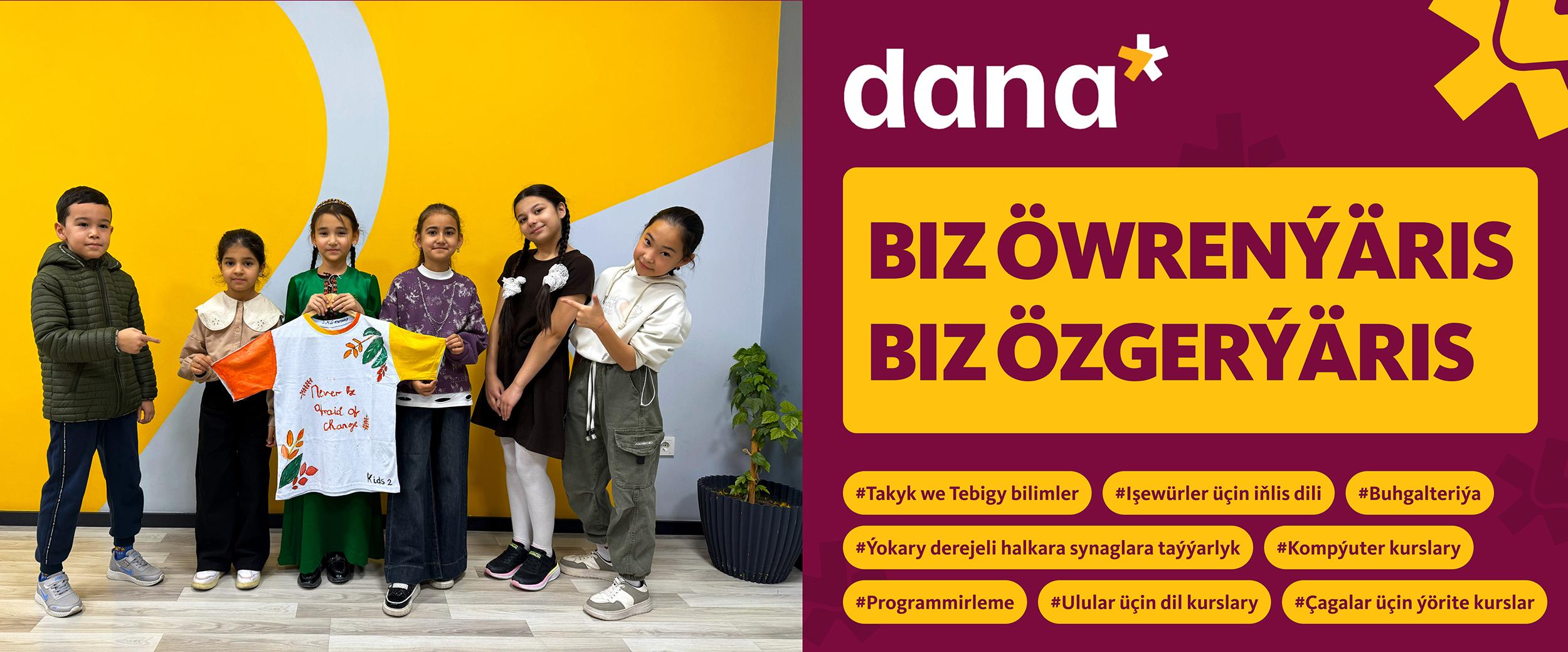 «Dana» bilim merkezi ulular we çagalar üçin dil, halkara synaglara taýýarlyk, hünär ýokarlandyryş, kompýuter, programmirleme we robot tehnologiýasy kurslaryny hödürleýär.