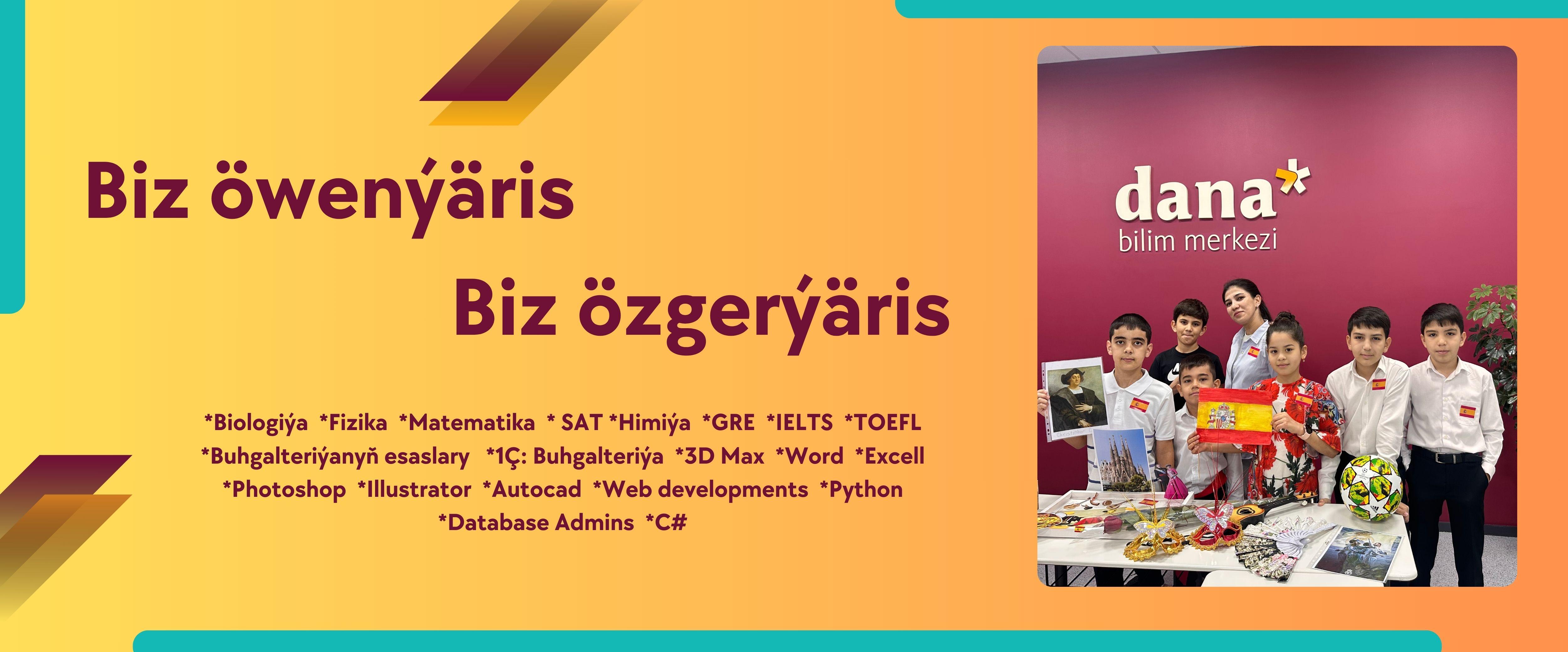 "Dana" bilim merkezi ulular we çagalar üçin dil kurslaryny, halkara synaglara taýýarlyk we hünär ýokarlandyryş kurslaryny hödürleýär.